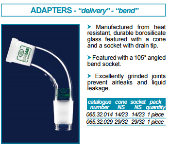 | 065.32.029 | 玻璃接头-蒸馏收集-母头 : NS29/32 -公头 : NS29/32 | 硼硅酸盐玻璃 | 1支/包装 | 支 | 原价:¥327.00 现价:¥327.00 |