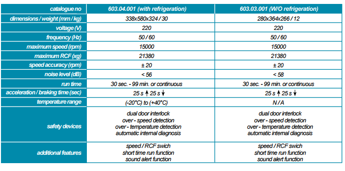 603.03.001 | 离心机-小型-高速-15000RPM-无制冷-液晶显示器 | 280x364x266 / 12 | 220 | 15000 | 1台/包装 | 台 | 原价:¥41832.00 现价:¥41832.00 |