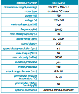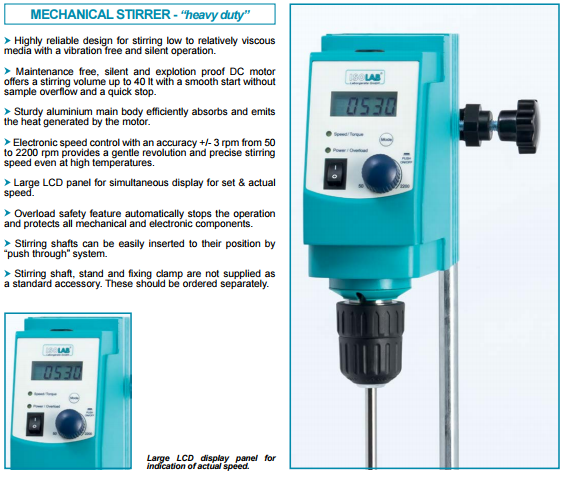 | 615.02.001 | 机械搅拌器-重型- 搅拌能力40L -液晶显示器 | 1支/包装 | 支 | 原价:¥21207.00 现价:¥21207.00 |