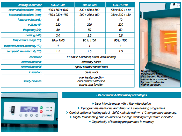 | 606.01.005 | 马弗炉 - 1100 C - 5 lt | 430 x 600 x 610 | 150 x 230 x 150 | 1支/包装 | 支 | 5L | 原价:¥43404.00 现价:¥43404.00 |