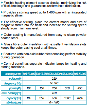 | 608.13.100 | 加热套 - 数字的 - 带搅拌器- 100 ml | 220 | 100 | 1支/包装 | 支 | 原价:¥4419.00 现价:¥4419.00 |