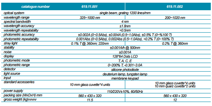 619.11.001 | 分光光度计- VIS - 325 to 1000 nm | 325~1000 nm | 560 x 430 x 320 | 11.5kg | 1件/包装 | 件 | 原价:¥19029.00 现价:¥19029.00 |
