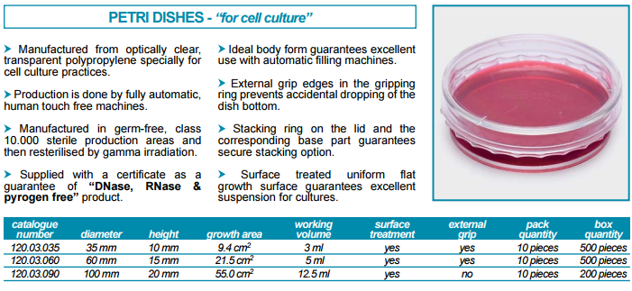 120.03.035 | 细胞培养皿- 35 mm 直径 | 聚丙烯 | 500支/箱 | 箱 | 原价:¥1914.00 现价:¥1914.00 |